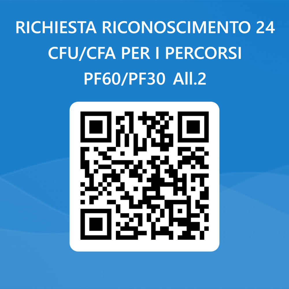 Si ricorda che per gli iscritti ai percorsi da 60 CFU è possibile il riconoscimento di tutti i 24 CFU, mentre per gli iscritti ai percorsi da 30 CFU Allegato 2, il riconoscimento massimo è di 12 CFU, ai sensi dell'allegato B del D.P.C.M. del 4 agosto 2024, punto F).